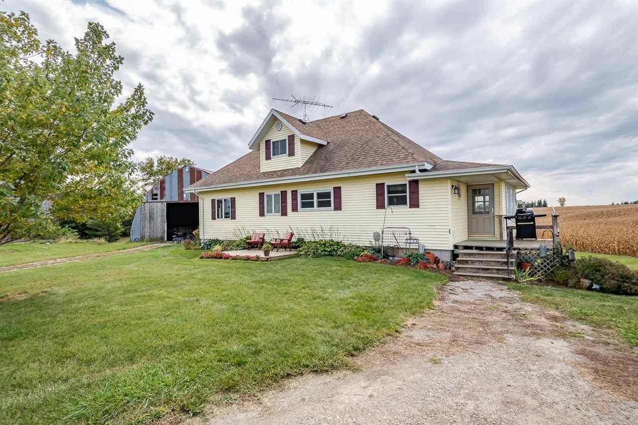 Charming home with 6 panel solid oak doors, Hdwd floors, heated floors on main and upper level, Walnut Trim on staircase to L.L. finished area & walk out. Large main floor Kitchen with Island, Convection Oven and an abundance of storage with lots of natural light from 3 directions. Spacious L shaped living room which leads to office area plumbed for auxiliary use. Main floor Primary with walk in closet & main floor laundry rm. "Princess Tower" large brm. featuring a .5 bath on second floor & heated floors. So much of the interior wood was installed from other sources such as corn cribs, barns and is so beautiful including the L.L. workshop a must see! 2 more brms & a full bath in LL. Large Quonset building and Barn on 5.23 Acres M/L. Great fenced in garden set up and ready for buyer. High Speed Int. & Fiber Optics! Central Air throughout. Beautiful sunset views are breathtaking!